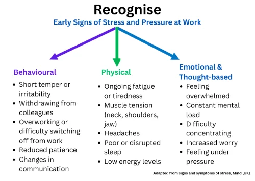 Recognise · Respond · Recover (RRR) is a non-clinical, evidence-informed wellbeing framework designed to help people understand stress, respond more effectively to pressure, and build sustainable self-care practices that support long-term wellbeing at work.